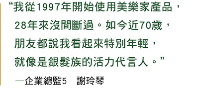 她強調:要主動去了解會員們使用產品後的真實回饋,進而幫助會員解決疑問,才能長遠留住顧客。「了解會員的需求,讓他們真正感受到美樂家產品帶來的生活改善。」從需求出發,讓會員真正愛上美樂家,成為長長久久的忠誠顧客。
