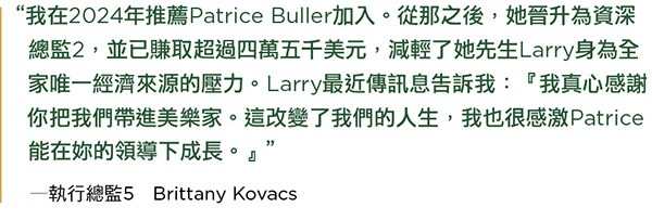 佳珈深信:美樂家帶來的不只是收入,而是一份能兼顧家庭與事業的人生。嚮往全職媽媽生活的她,心中同時也有一個聲音說:「只有在美樂家成功,才能真正陪伴孩子,擁有最理想的家庭生活。」她下定決心全力以赴,朝資深總監邁進。