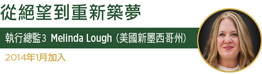 「美樂家把我帶回孩子身邊,」Melinda 說。「讓我回到屬於自己的人生,減輕了財務壓力。讓我成為更好的朋友、更好的女兒、更好的媽媽。」她更深有感觸地補充道:「歸根究柢,美樂家讓我們一家重新開始築夢。」