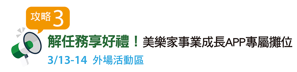 幫助事業成長的最佳工具──「美樂家事業成長APP」推出滿一週年了!外場活動區特別設置專屬攤位,憑年會門票到攤位完成簡單任務,可當場兌換專屬的限量好禮。